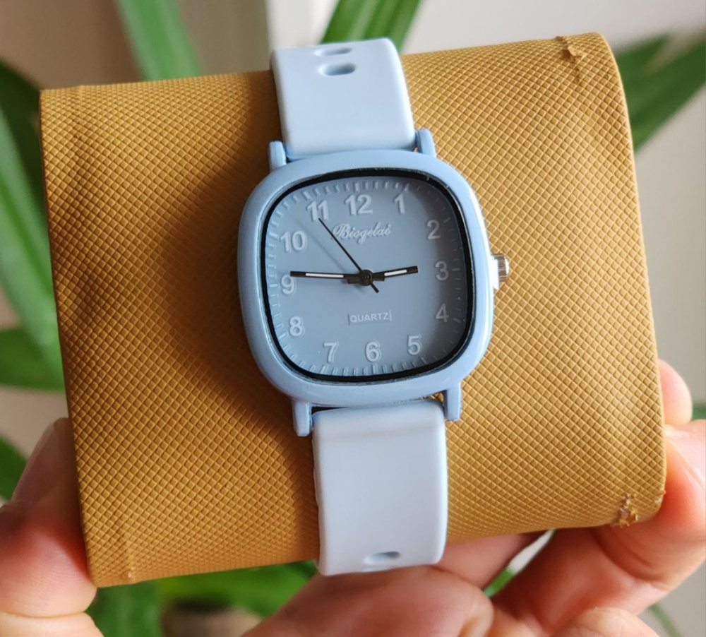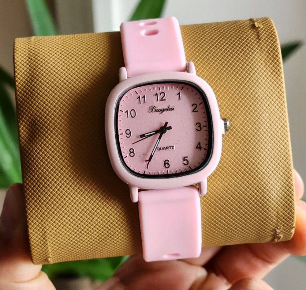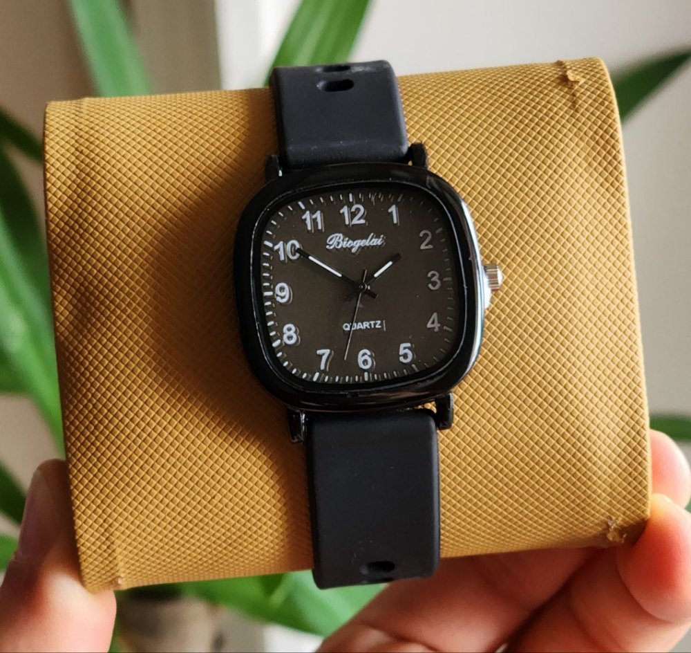 - ساعت مچی فانتزی سیلیکونی صفحه مربع رنگی پاستیلی(مشکی )+باطری اضافی کد 3031