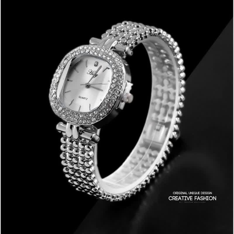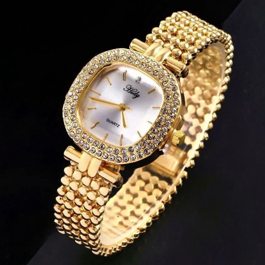 - ساعت مچی زنانه صفحه مربعی بند طلایی هایدیHidy +باطری اضافی کد 4001