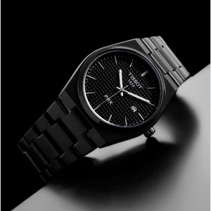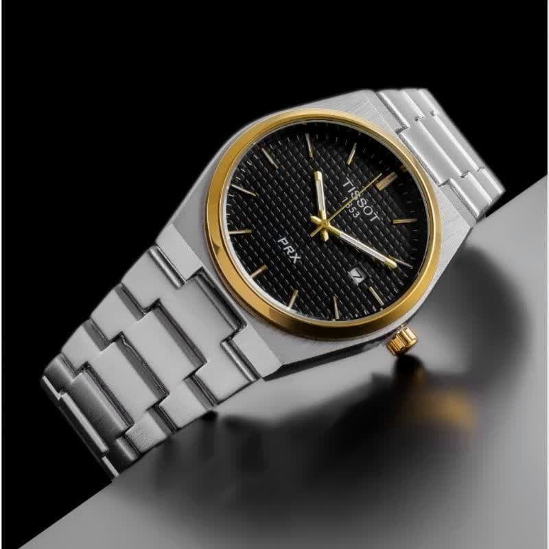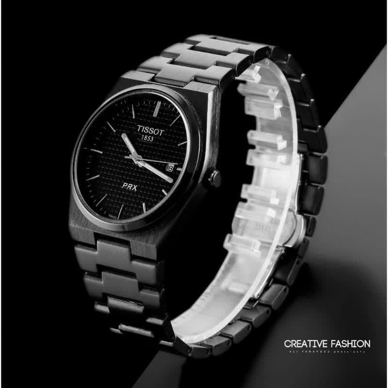 - ساعت مچی مردانه صفحه مشکی بند نقره ایی تیسوت+باطری اضافی کد 4004