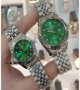 - ست ساعت رولکس دیت جاست صفحه سبز بند نقره ایی +باطری اضافی کد 4045