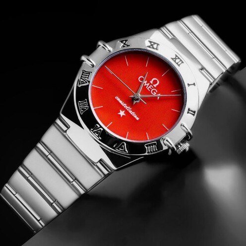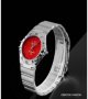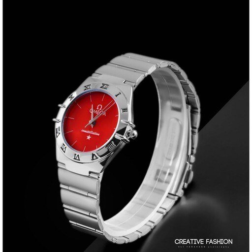 ساعت مچی زنانه امگا صفحه گرد قرمز بنده استیل نقره ایی+باطری اضافی کد 4050