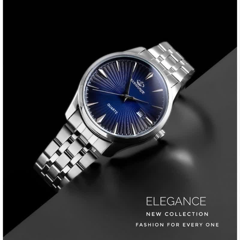 - ساعت مچی مردانه الگانس صفحه آبی بند نقره ایی+باطری اضافی کد 4057