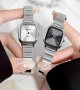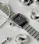 ساعت مچی زنانه نایدو رنگ ثابت مکعبی شرکتی بند کرکره ایی استیل نقره ایی مشکی+باطری اضافی کد 2300