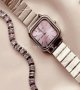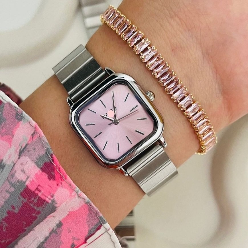 ساعت مچی زنانه نایدو رنگ ثابت مکعبی شرکتی بند کرکره ایی استیل نقره ایی صورتی+باطری اضافی کد 2301