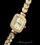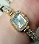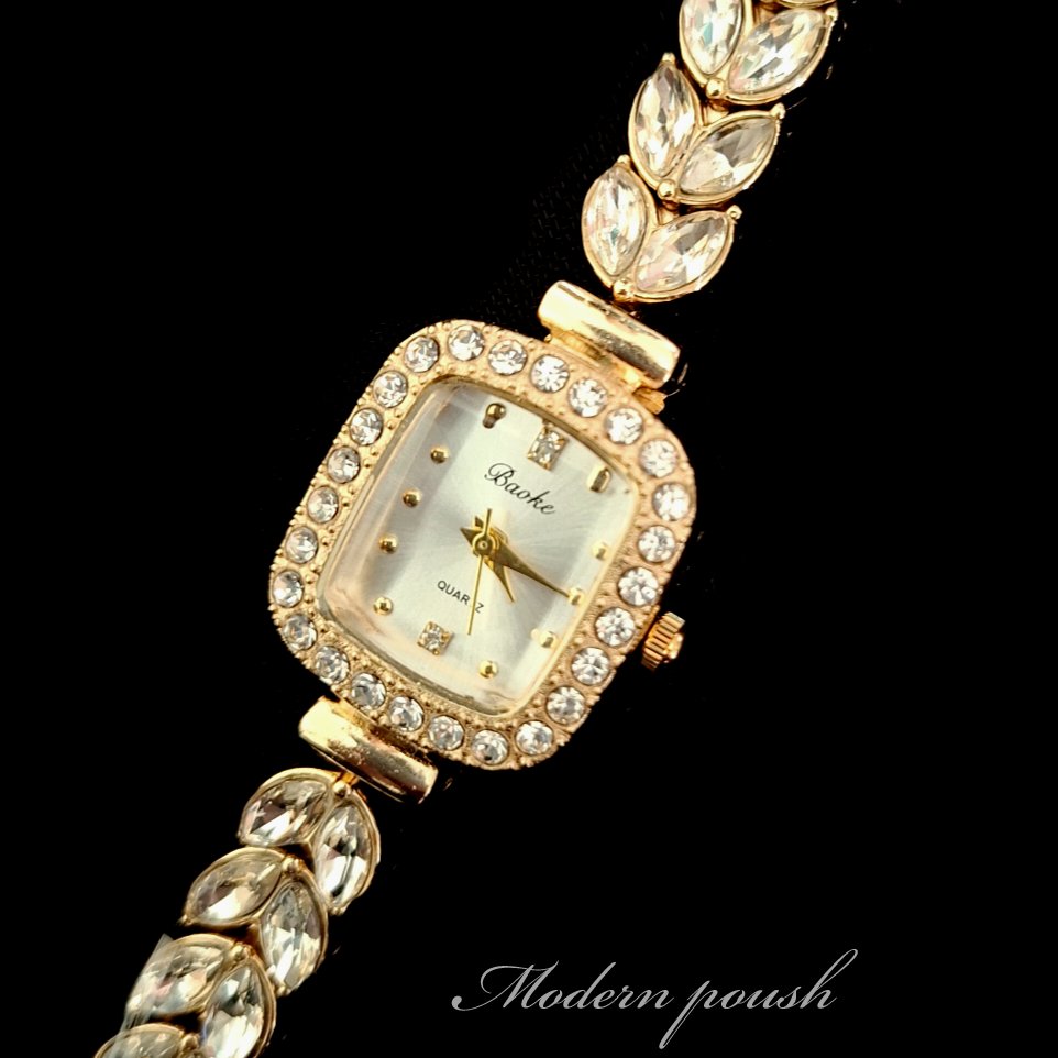 - ساعت مچی زنانه نگین دار طرح رویال کرون صفحه مستطیلی سفید بندطلایی+باطری اضافی کد 2317