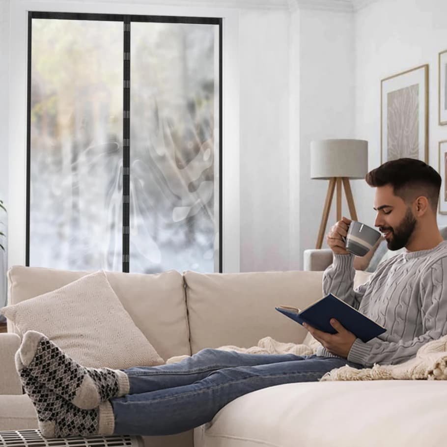 مشخصات : 1 : استفاده از نایلون ایرانی با ضخامت 250 میکرون , 2: استفاده از آهنربا به صورت منقطع , 3: استفاده از 4 عدد چسب وچسبک دو طرفه 15 سانتی متری خارجی در سمت راست و چپ پرده و چسب وچسبک 5 سانتی متری خارجی به صورت یکسره در بالای پرده