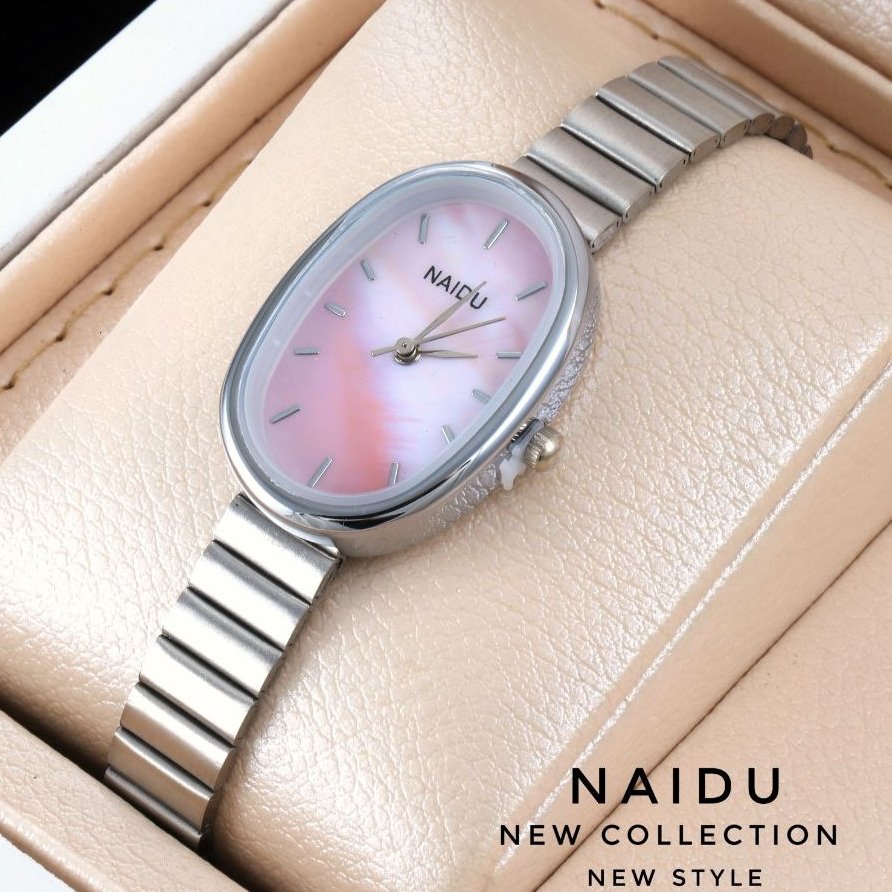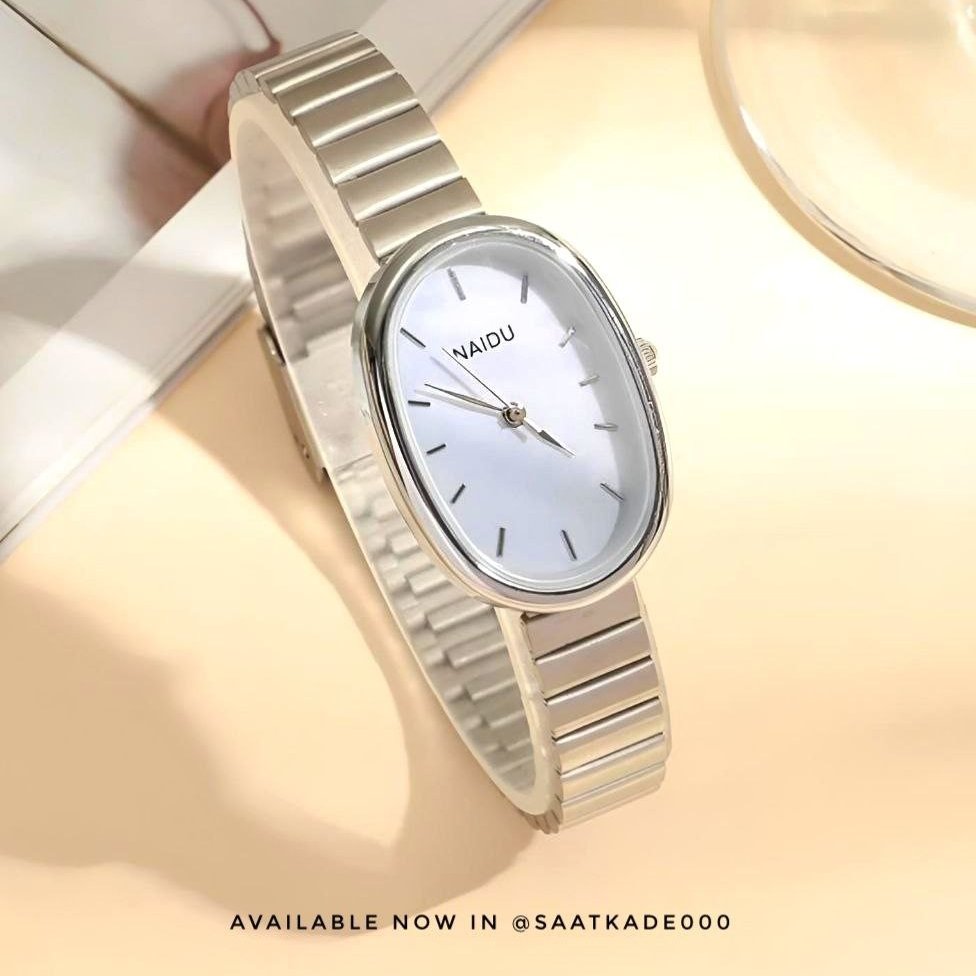 ساعت مچی زنانه استیل نقره ای بیضی نایدو NAIDU+باطری اضافی کد 2517