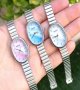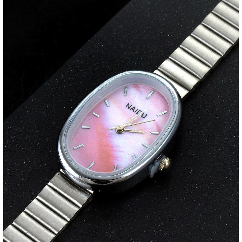 ساعت مچی زنانه بیضی بند استیل نقره ایی صفحه صورتی نایدو NAIDU+باطری اضافی کد 2521