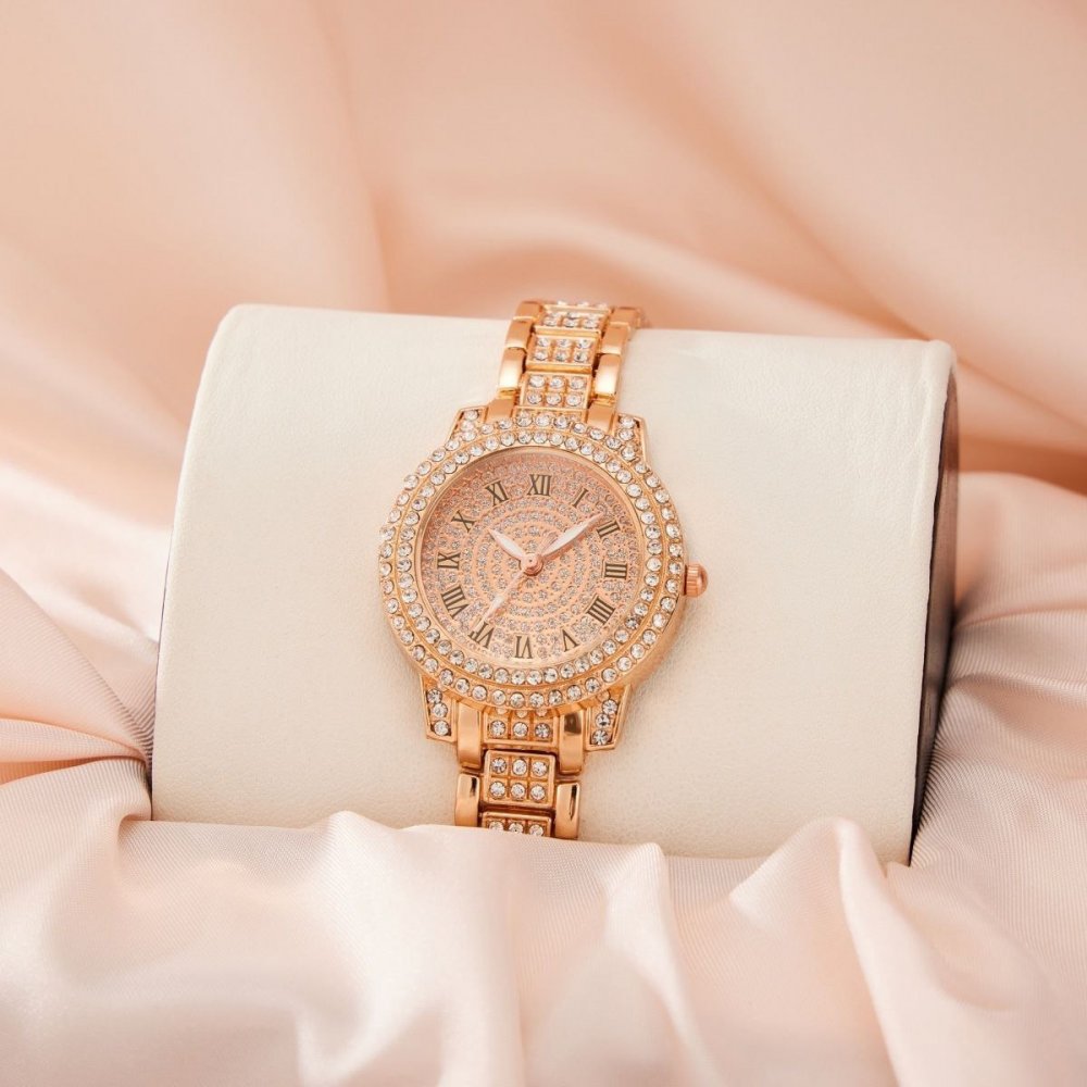- ساعت زنانه جینوا نگین دار دستبندی یونانی رزگلد+باطری اضافی کد2549