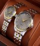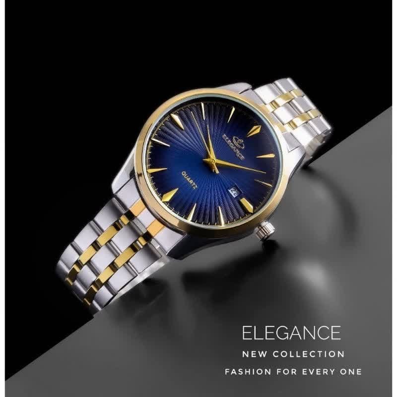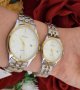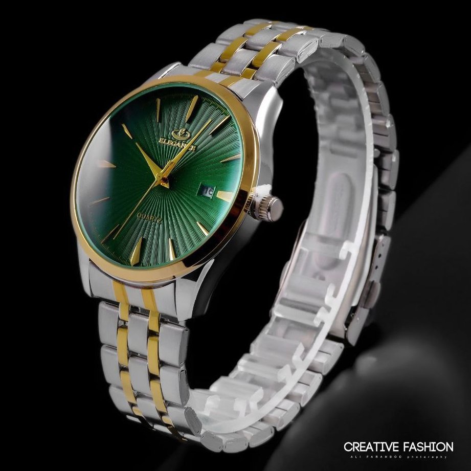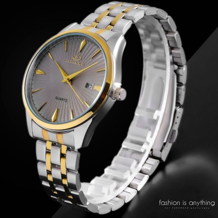 - ست ساعت مچی مردانه و زنانه الگانس صفحه مشکی بند دو رنگ+باطری اضافی کد 2552