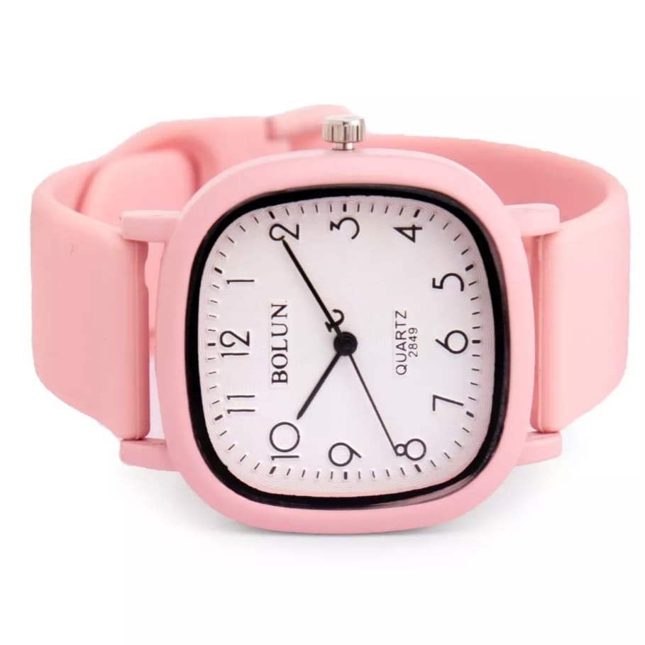 - ساعت مچی زنانه و دخترانه بلون BOLUN بند سیلیکونی پاستیلی صورتی+باطری اضافی کد 2561