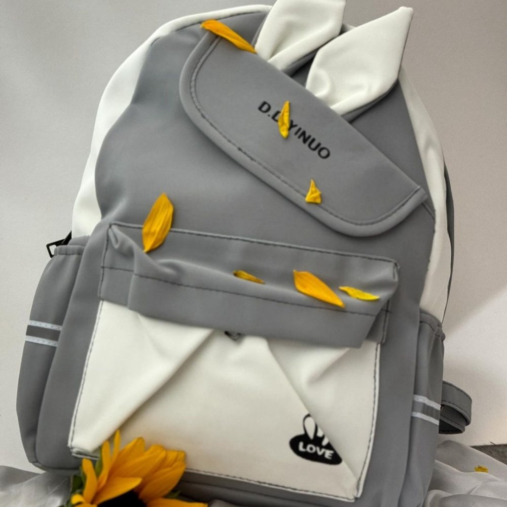 کیف کوله پشتی کنفی طرح خرگوشی خاکستری دخترانه کد 2591