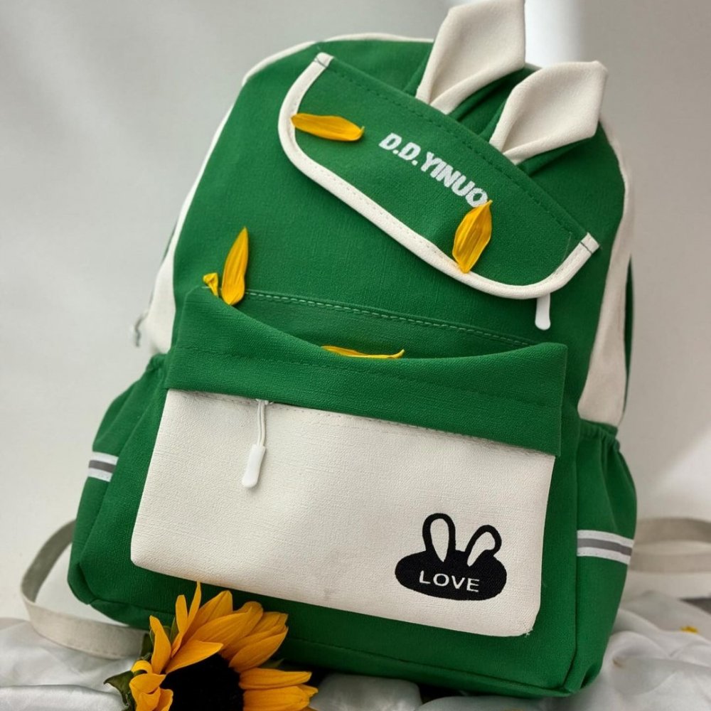 کیف کوله پشتی کنفی طرح خرگوشی سبز دخترانه کد 2593