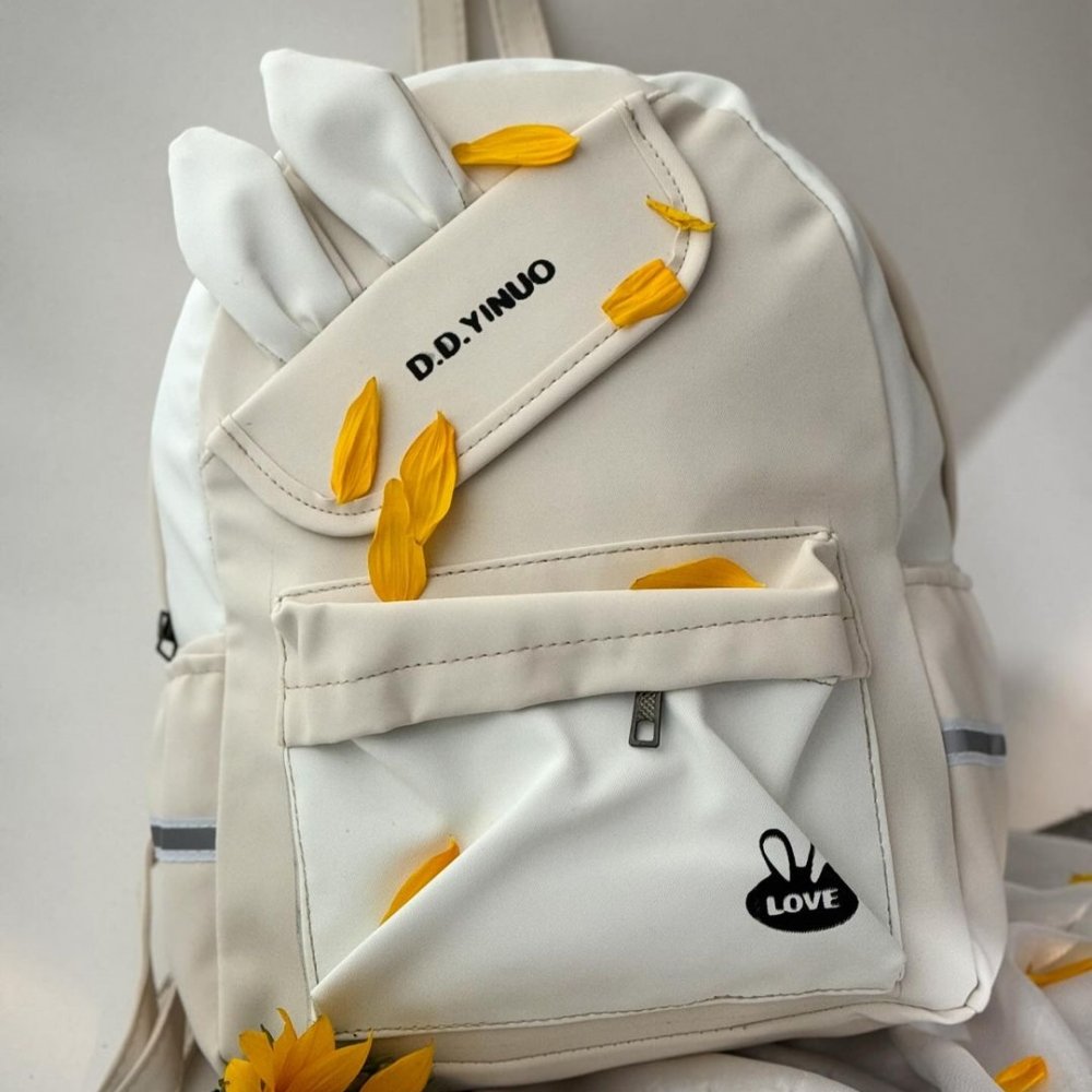 کیف کوله پشتی کنفی طرح خرگوشی کرمی دخترانه کد 2592