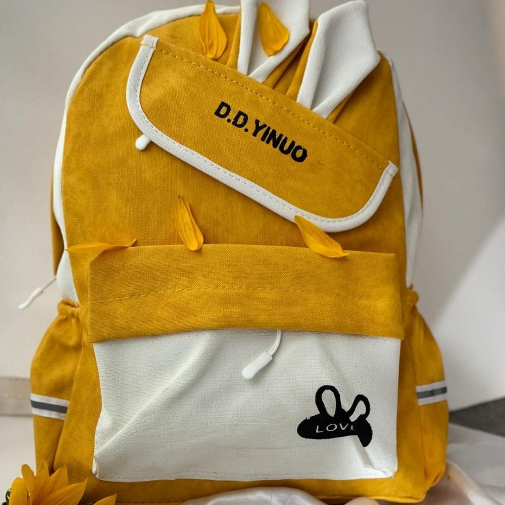 کیف کوله پشتی کنفی طرح خرگوشی خردلی دخترانه کد 2589