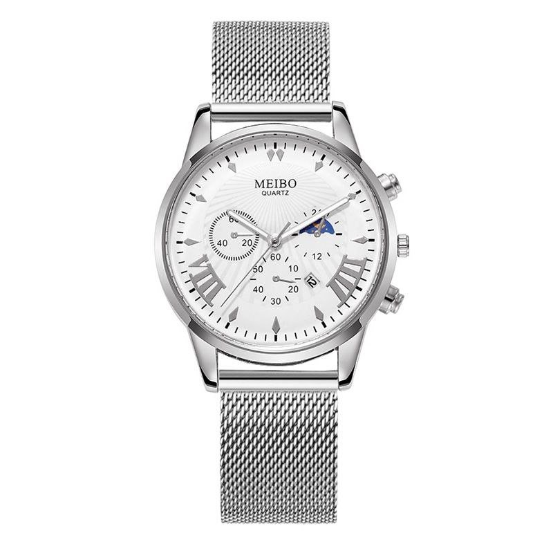 - ساعت مچی مردانه MEIBO می بو بند حصیری نقره ایی شیک+باطری اضافی کد2638