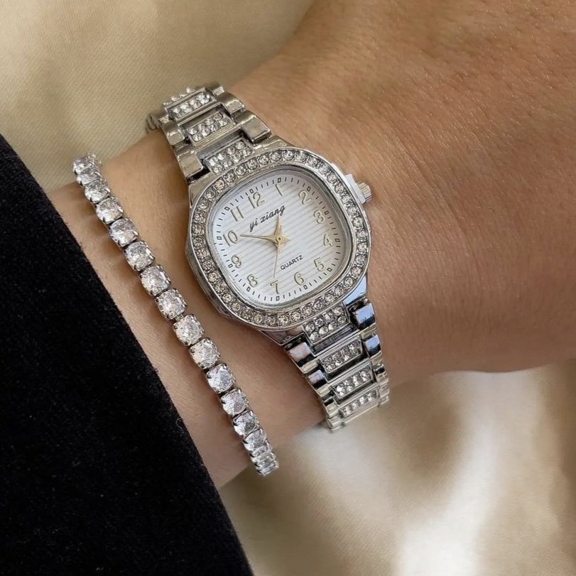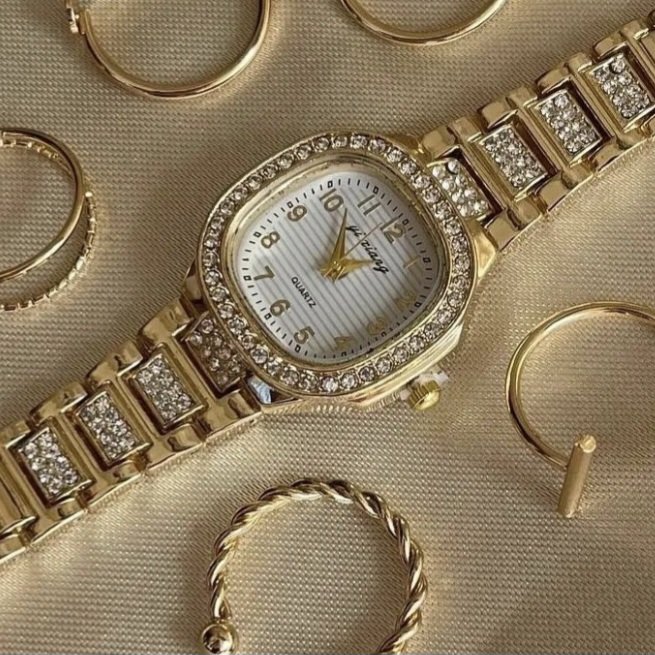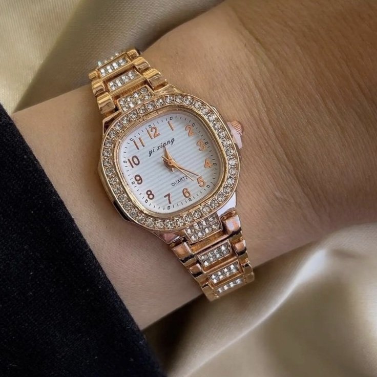 - ساعت مچی زنانه دستبندی نگین دار دلوین Delvin شیک و مجلسی رزگلد+باطری اضافی کد 2680