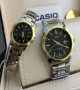 - ساعت ست و تکی زنانه و مردانه عقربه ای کاسیو CASIO صفحه گرد مشکی بند استیل دو رنگ طلایی نقره ایی+باطری اضافی - تک کد 2726