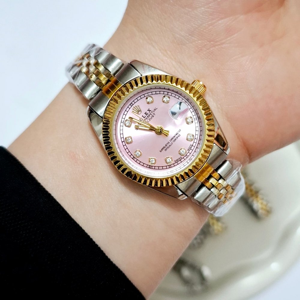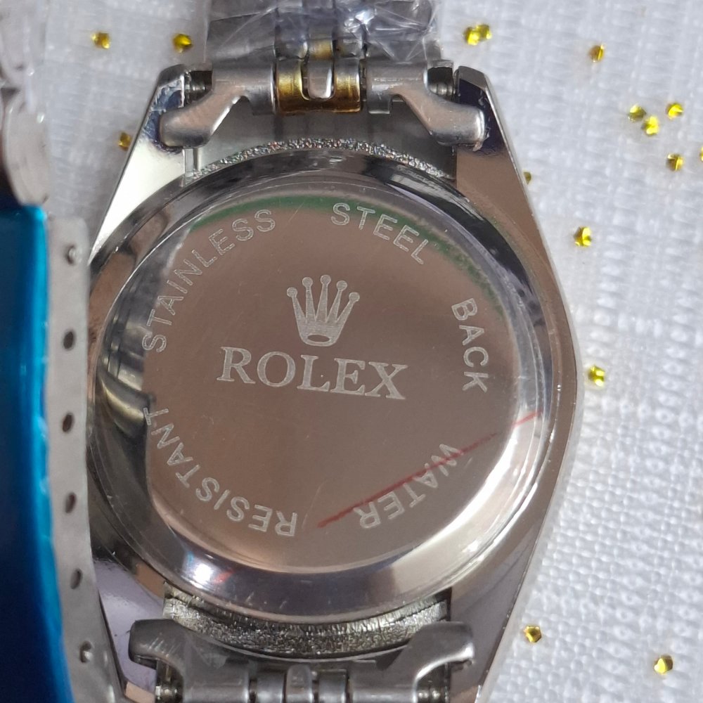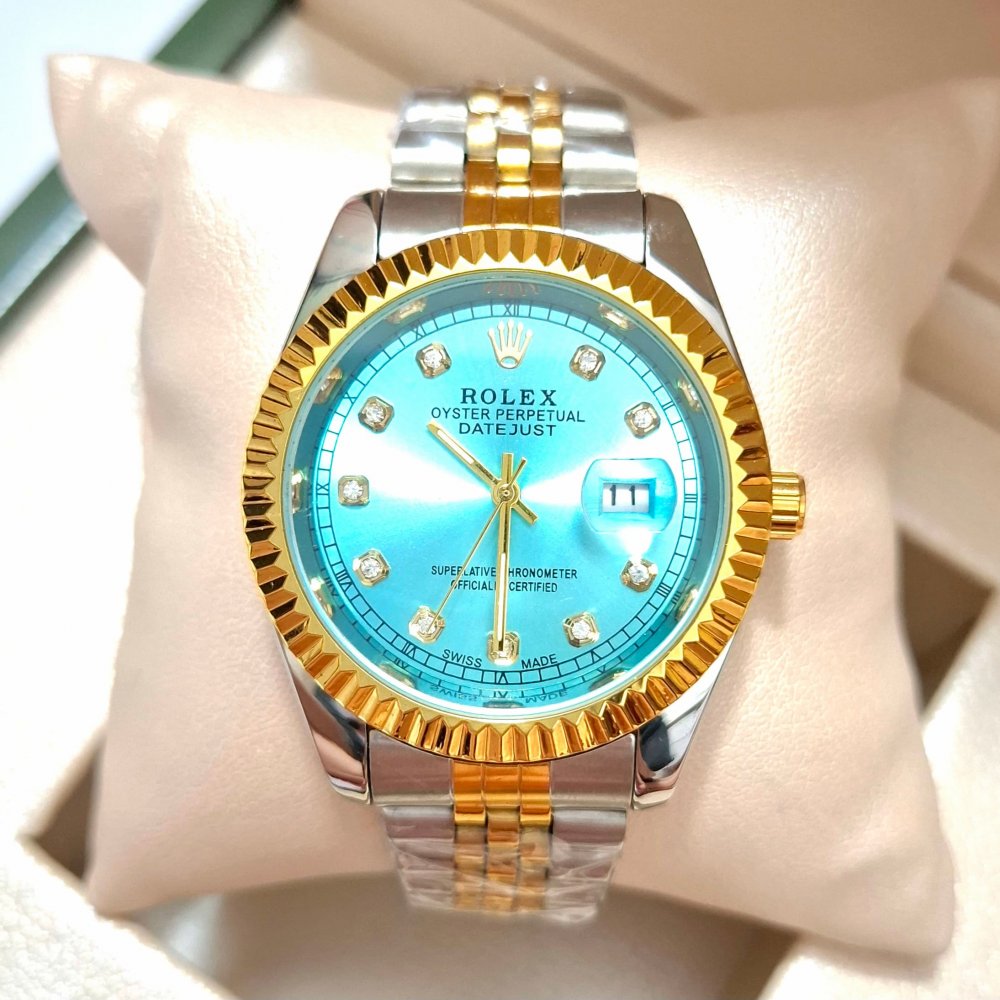 ساعت اسپرت رولکس دیت جاست بند نقره ای طلایی صفحه آبی ضد آب شیک +باطری اضافی کد 2750