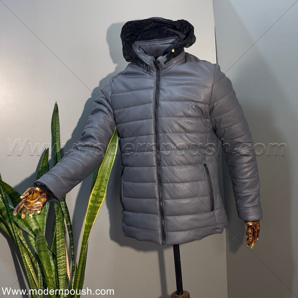 - کاپشن چرم فیلی مردانه طرح جدید کلاه مخفی زمستانه (پشم شیشه دار) کد2778