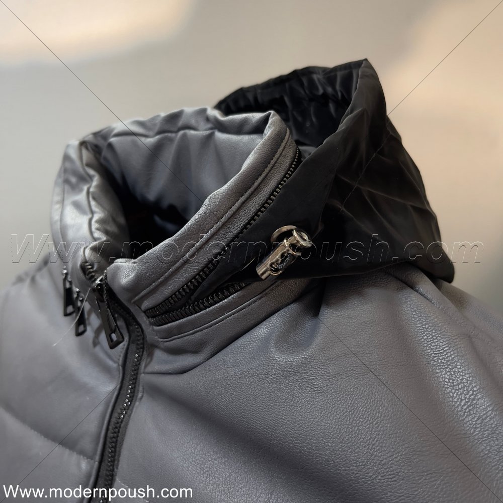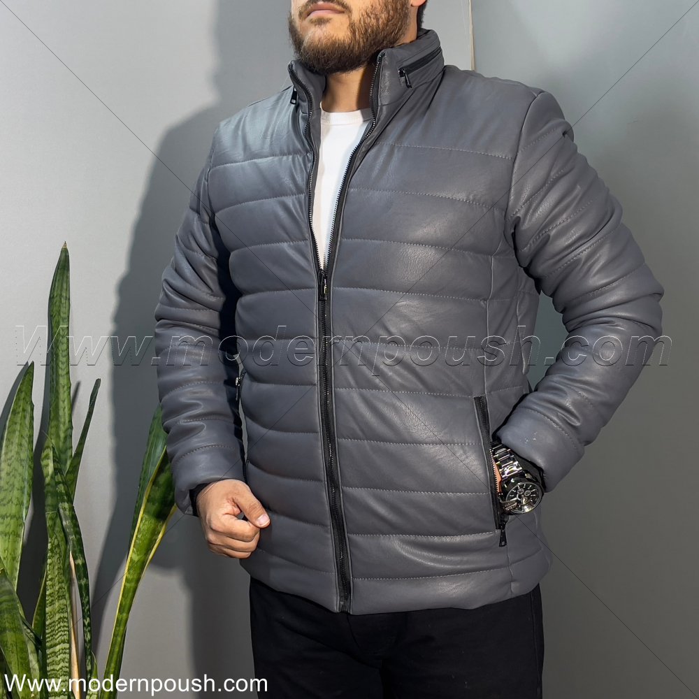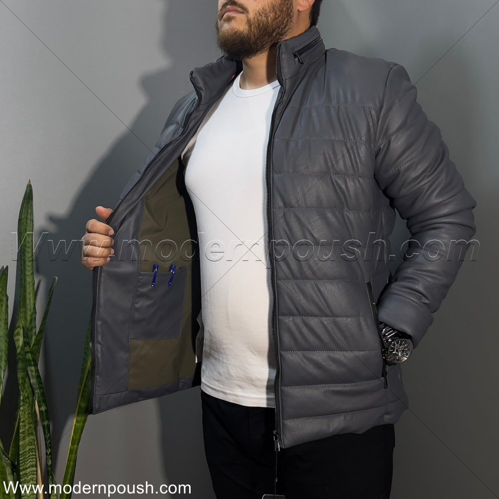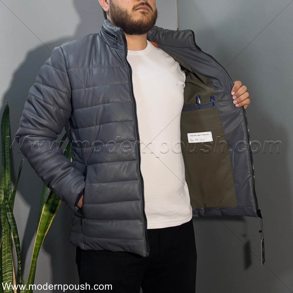 کاپشن چرم فیلی مردانه طرح جدید کلاه مخفی زمستانه (پشم شیشه دار) کد2778