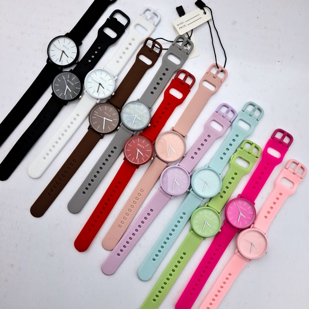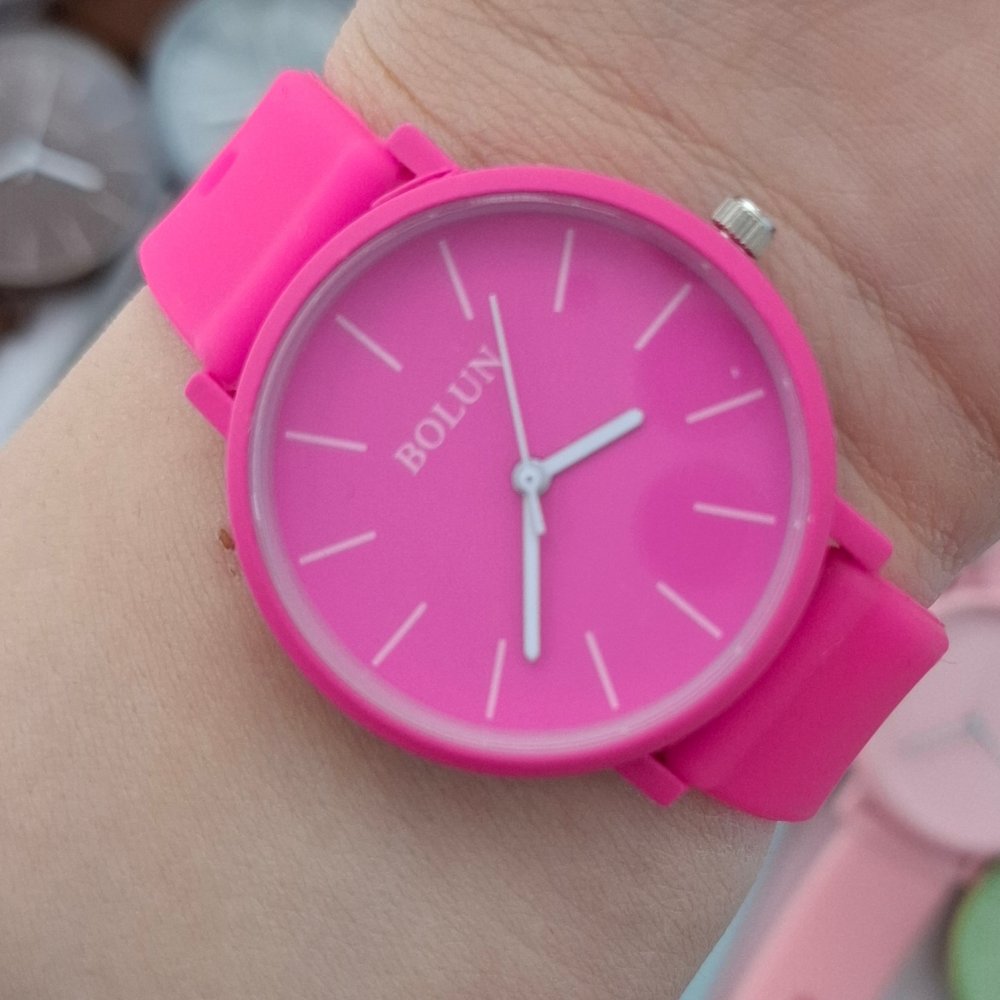 - ساعت مچی زنانه و دخترانه بلون BOLUN گرد بند سیلیکونی پاستیلی صورتی پاستیلی کد2849