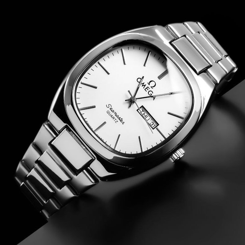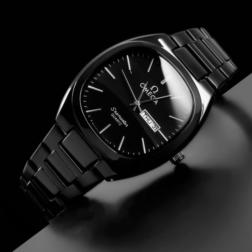 ساعت مچی مردانه برند امگا Omega شیشه کریستال ضدخش بند استیل نقره ایی درجه یک موتور ژاپن صفحه نمایش مربع مشکی+باطری اضافی کد2865