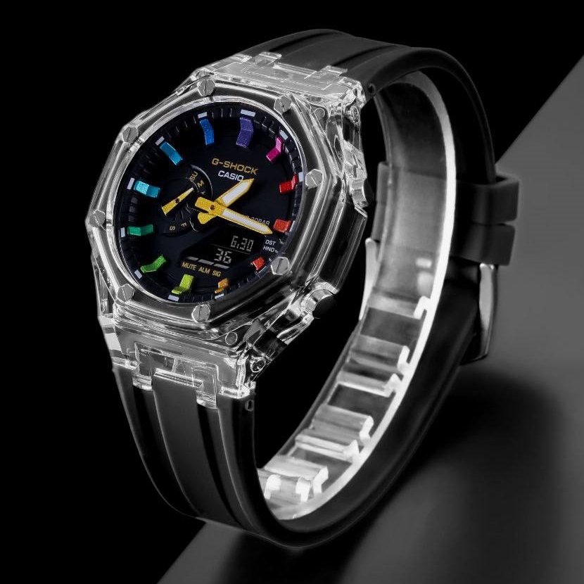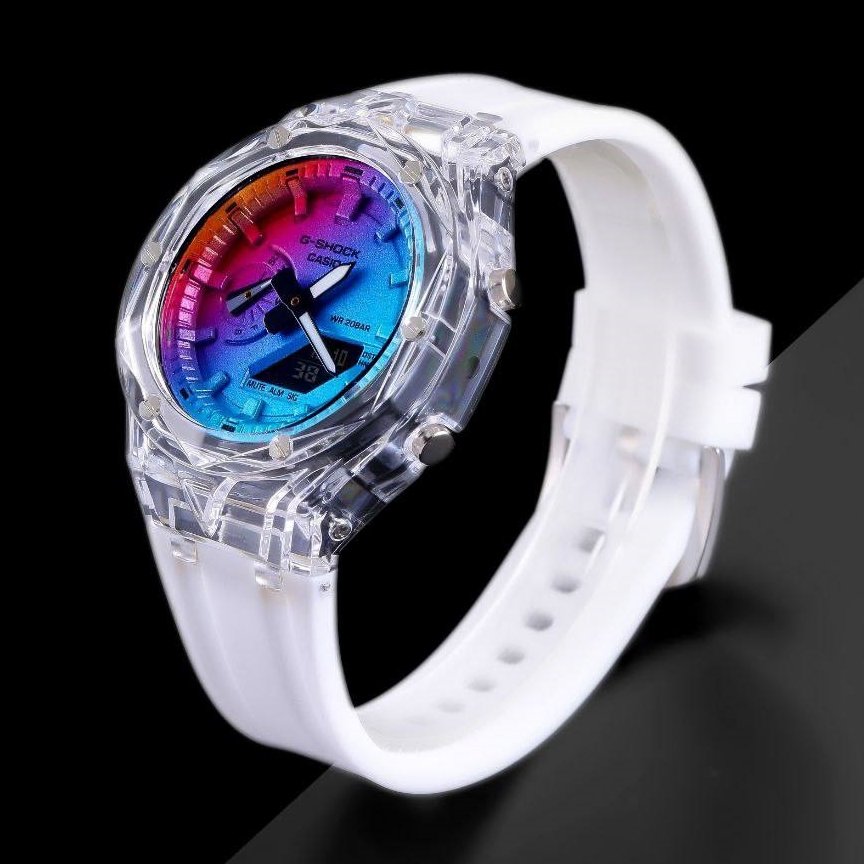 - ساعت مچی اسپرت G-shock قاب شیشه ایی موتور برقی ژاپن صورتی جی شاک مخصوص ورزشکاران+باطری اضافی کد2933