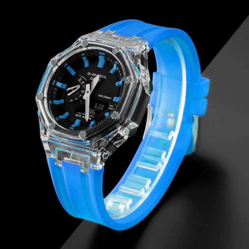 ساعت مچی اسپرت G-shock قاب شیشه ایی موتور برقی ژاپن آبی جی شاک مخصوص ورزشکاران+باطری اضافی کد2940