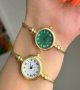 - ساعت مچی زنانه صفحه نمایش سبز بند طلایی طرح دستبندی النگویی بنگل+باطری اضافی کد2950