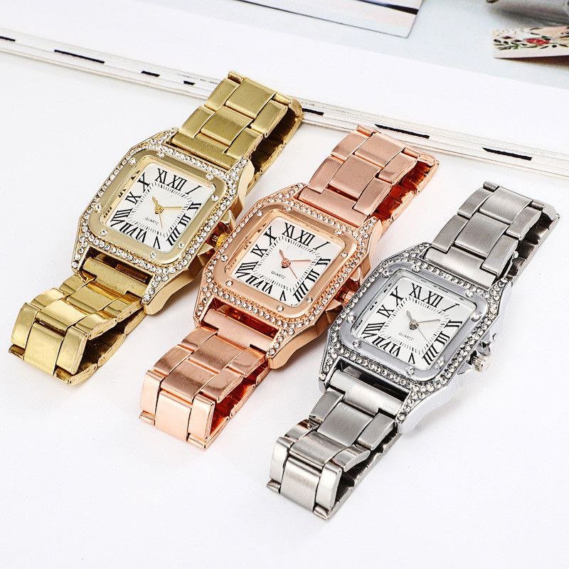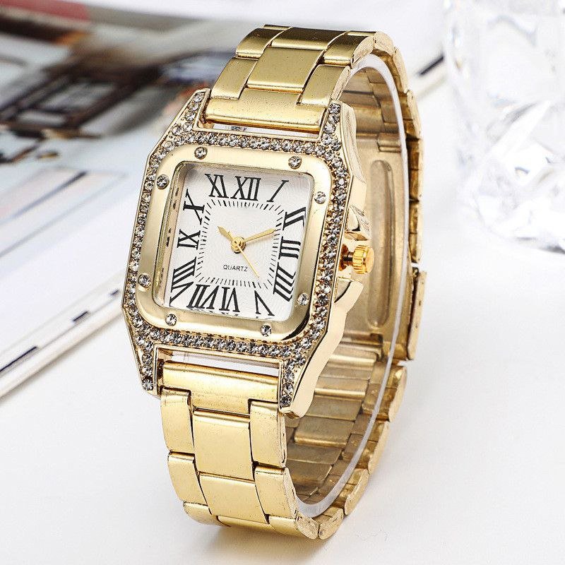 - ساعت مچی زنانه کارتیه CARTER طرح یونانی صفحه نمایش مربع بند استیل طلایی+باطری اضافی کد2970