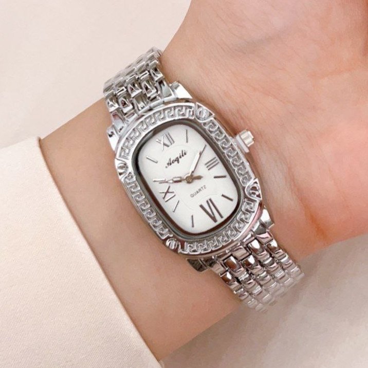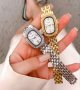 - ساعت مچی زنانه مجلسی الی وی جواهری Ellie Vai jewellery صفحه نمایس مستطیل نگین دار بند استیل طلایی+باطری اضافی کد 2972