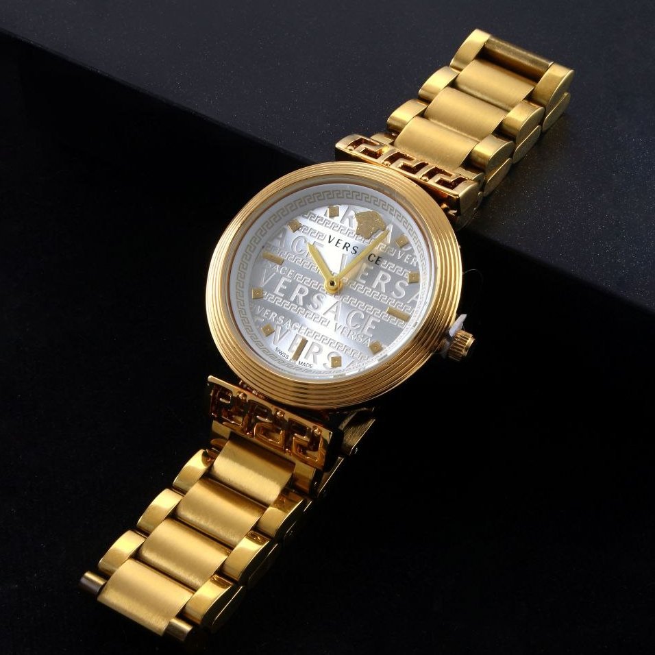 ساعت مچی زنانه برند ورساچه Versace شیشه کریستال بند استیل طلایی صفحه نمایش گرد سبز +باطری اضافی کد 3124