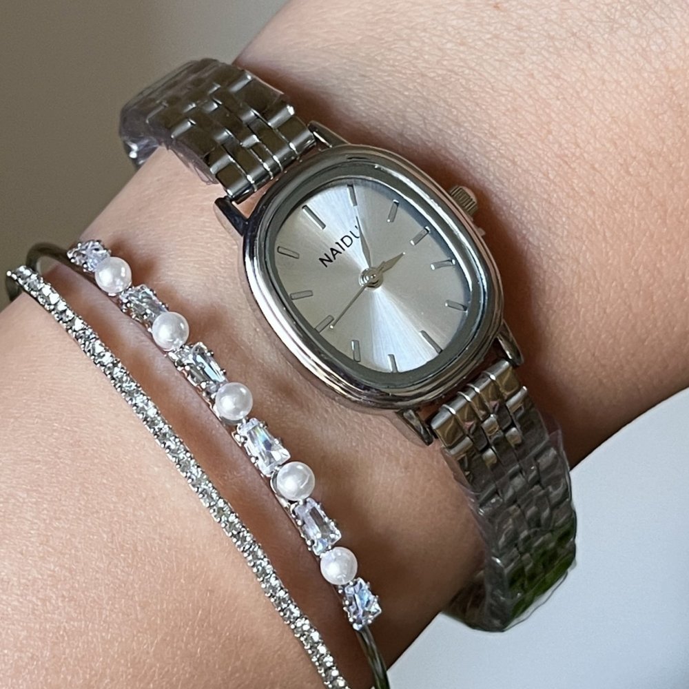 - ساعت مچی زنانه نایدو NAIDU مدل صفحه بیضی سبز بند استیل+باطری اضافی کد 3137