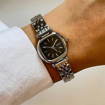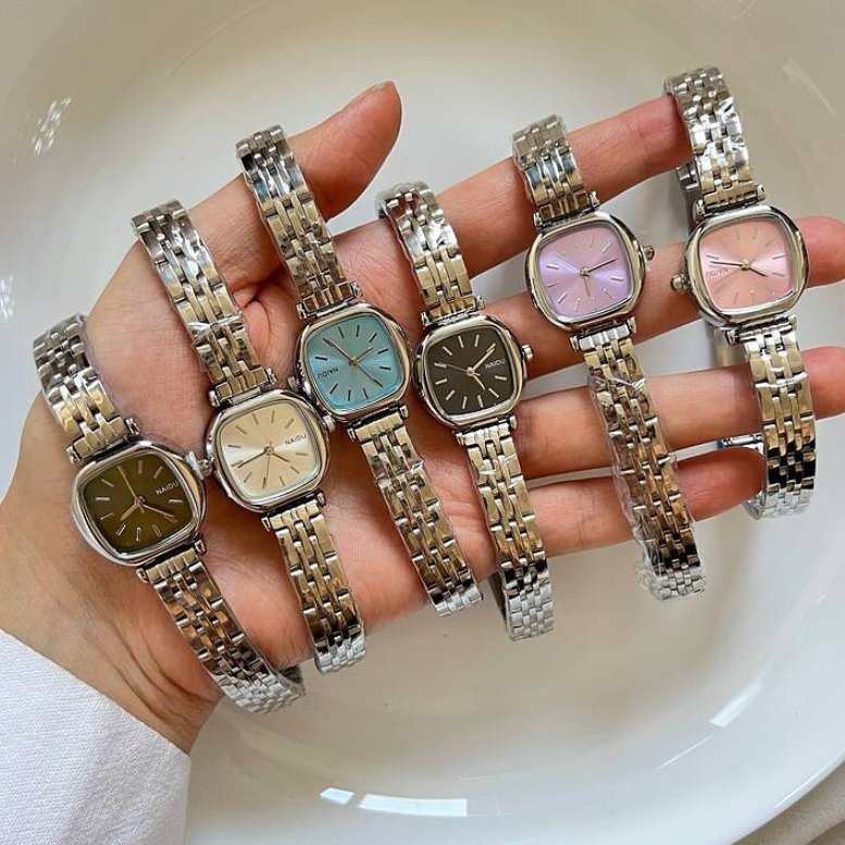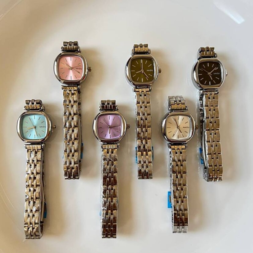 - ساعت مچی زنانه نایدو NAIDU بند حصیری استیل نقره ایی مدل صفحه مربعی آبی +باطری اضافی کد 9185