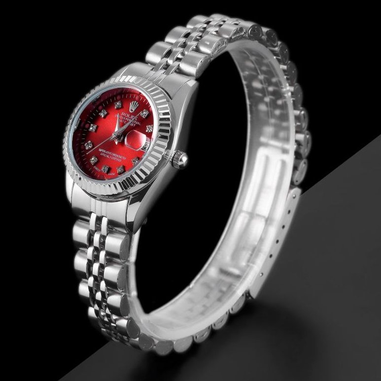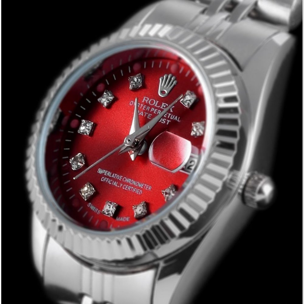 - ساعت مچی زنانه رولکس دیت جاست بند نقره ای صفحه گرد ضد آب قرمز (زرشکی) شیک +باطری اضافی کد9186
