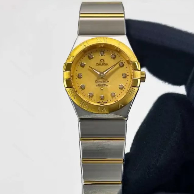 - ساعت مچی زنانه امگا طرح کانستلیشن Omega Constelation کیفیت عالی بند استیل دو رنگ صفحه نمایش صورتی+باطری اضافی کد 9194