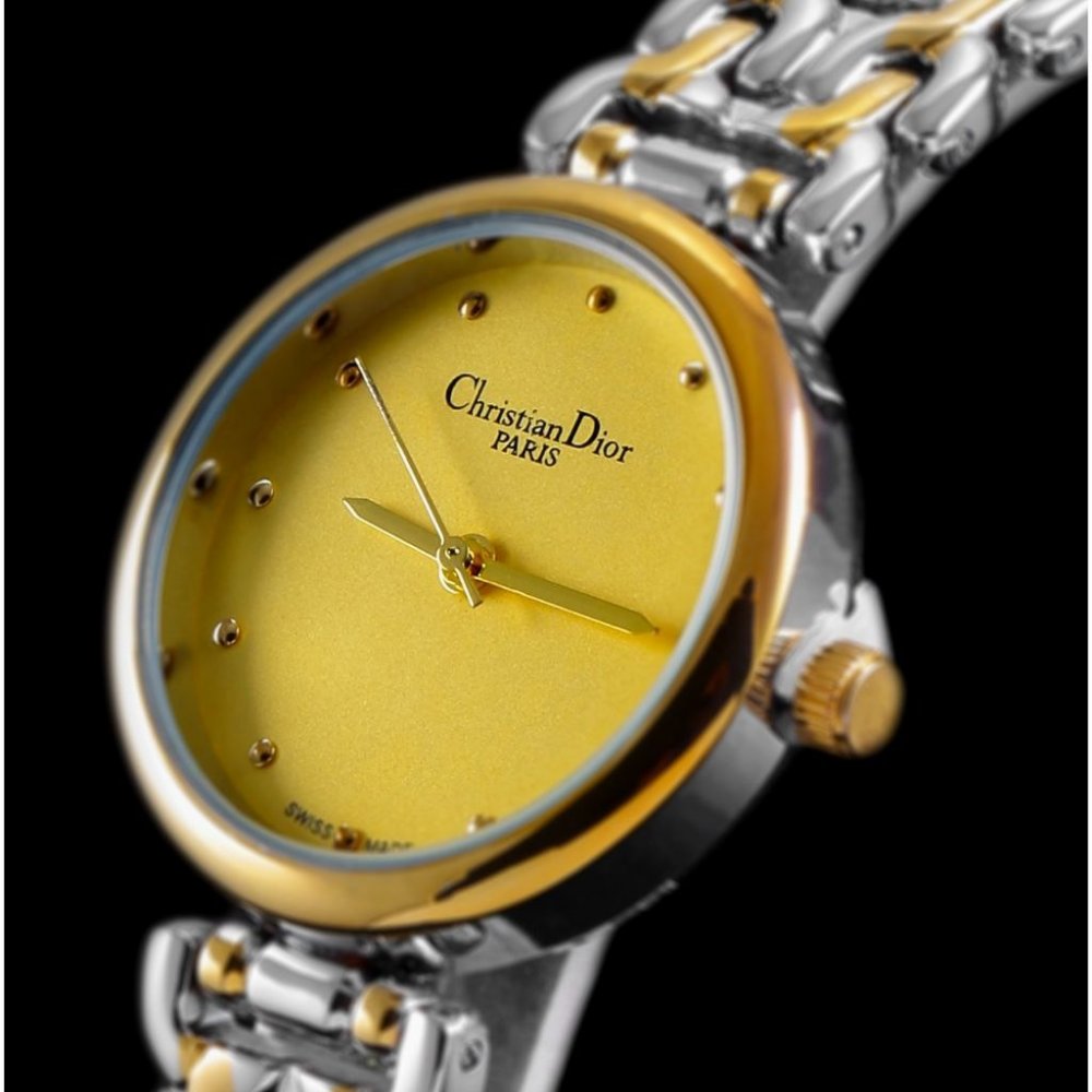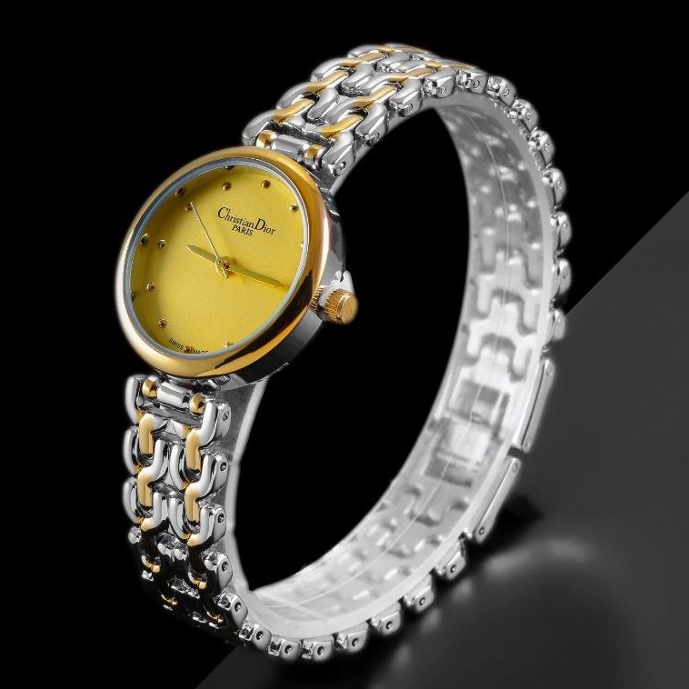 ساعت مچی زنانه دیور Dior بند استیل طلایی و نقره ایی صفحه نمایش طلایی ضدآب شیک+باطری اضافی کد 9200