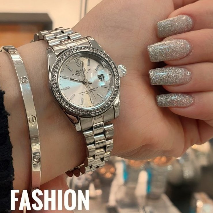 - ساعت مچی زنانه رولکس دیت جاست Rolex DayJust بند استیل نقره ایی+باطری اضافی کد 9209