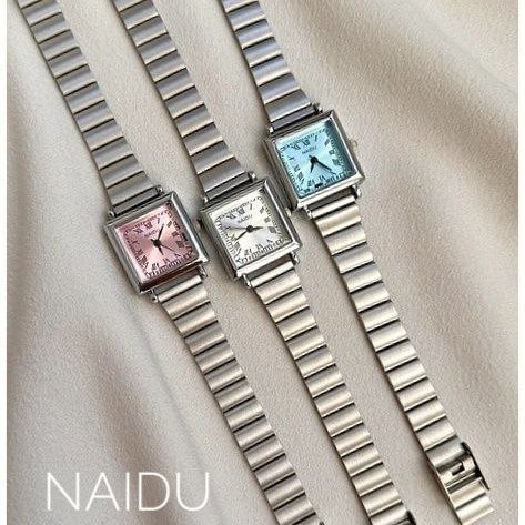 - ساعت مچی زنانه بند استیل کرکره ایی نایدو naidu مربعی آّبی/صورتی+باطری اضافی کد 9214