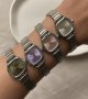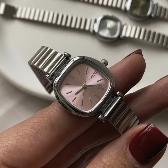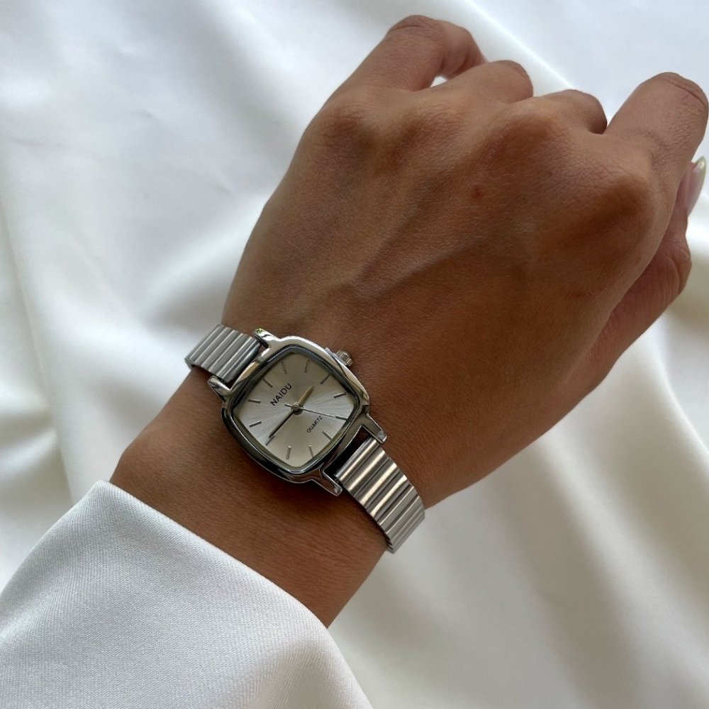 - ساعت مچی زنانه نایدو naidu منیمال بند استیل کرکره ایی مربعی سفید+باطری اضافی کد 9218