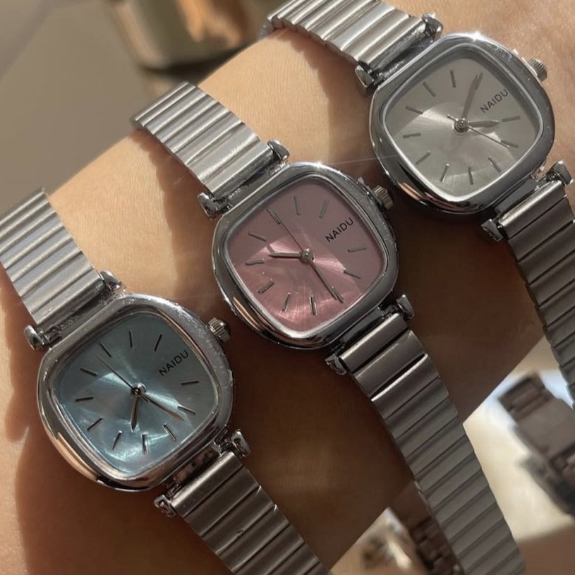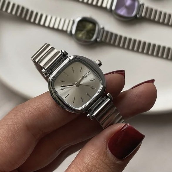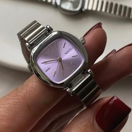 - ساعت مچی زنانه نایدو naidu منیمال بند استیل کرکره ایی مربعی بنفش+باطری اضافی کد 9222