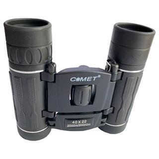 دوربین دوچشمی کومت مدل 40X22 یکی دیگر از دوربین های برند معروف و معتبر COMET (کومت) است.این دوربین که به دوربین چریکی (طرح 2022) معروف است دارای بدنه ای از جنس آلیاژ آلومینیوم میباشد که با روکشی از جنس پلاستیکی 3 لایه پوشانده شده است، این روکش پلاستیکی مقاومت بالایی در مقابل ضربه و سایش دارد.در طراحی ظاهر این روکش برجستگی هایی ایجاد شده که باعث میشود در هنگام استفاده هوا بین دست شما و بدنه دوربین در رفت و امد باشد همین امر موجوب میشود که از تعرق دست شما در هنگام استفاده از دوربین دوچشمی کومت مدل 40X22 جلوگیری شود.دوربین دوچشمی کومت مدل 40X22 بیشتر از 10 برابری است که به واسطه منشورهایی از نوع ROOF و اپتیک هایی از نوع F.M.C.O آکروماتیک که با استاندارد پوششی BAK 7 پوشانده شده است به شما تصاویری شفاف و با وضوحی بالا ارائه میدهد.فوکوس این دوربین از طریق یک غلتک هیدرو که در مرکز دوربین قرار دارد تنظیم میشود و همانند بسیار از دوربین های دیگر در قسمت لنز چشمی راست دارای یک دیوپتر چشمی است که از آن برای اصلاح عیوب انکسار چشمی استفاده میشود.وزن دوربین دوچشمی کومت مدل 40X22 در حدود 185 گرم است که باعث میشود حمل و نقل آن بسیار راحت باشد.این دوربین دارای اتصالات لولا مانند است که به شما امکان این را میدهند برای استفاده هرچه راحت تر و تنظیم فاصله دو محفظه لنز ها از یکدیگر آن ها را به اندازه 40 درجه جا به جا کرده و محفظه لنز ها را به یکدیگر نزدیک(حالت جمع شده)و یا از یکدیگر دور (باز شده کامل) کنید.به همراه دوربین دوچشمی کومت مدل 40X22 یک کیف کمری برزنتی ، یک دستمال تنظیف برای پاکسازی لنز ها و یک بند مخصوص گردنی برای حمل آسانتر دوربین موجود میباشد.