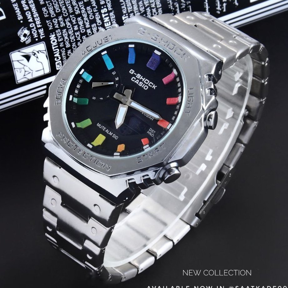 - ساعت مردانه جیشاک بند استیل نقره ایی دو زمانه موتور برقی ژاپن G shock+باطری اضافی کد9252