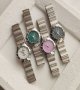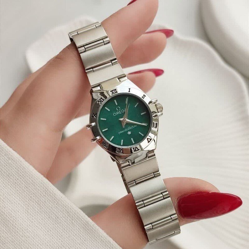 - ساعت مچی زنانه امگا صفحه گرد سفید بنده استیل نقره ایی+باطری اضافی کد 9277
