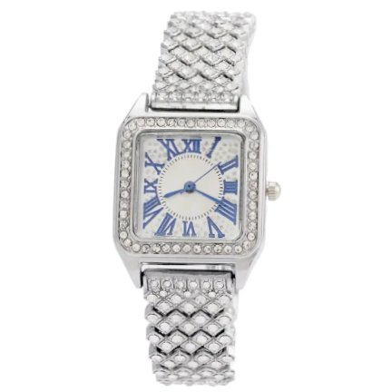 - ساعت زنانه فول نگین بند استیل مجلسی نگین دار نقره ایی jiali+باطری اضافی کد9290