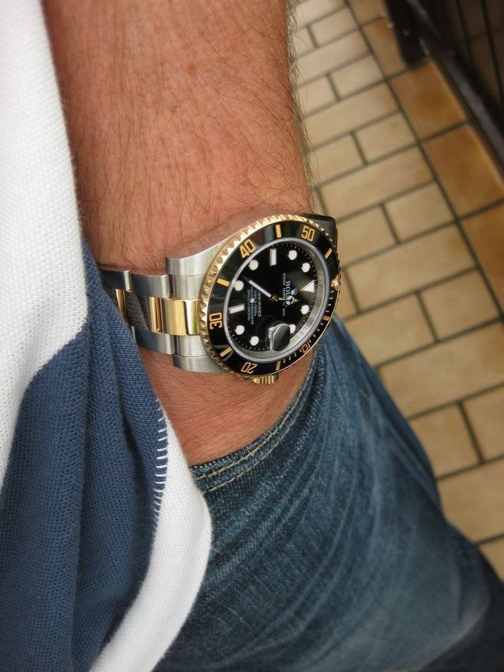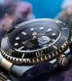 - ساعت مچی عقربه ای مردانه Rolex رولکس ساب مارین صفحه مشکی بند دو رنگ نقره ایی و طلایی+باطری اضافی کد 9297