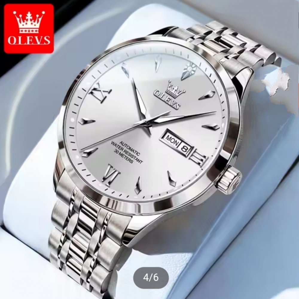 - ساعت مچی مردانه اولوز OLEVS بند استیل نقره ایی صفحه نمایش طوسی کیفیت عالی+باطری اضافی کد 9315
