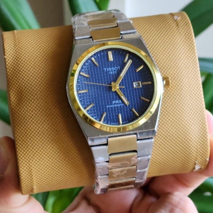 ساعت مچی مردانه تیسوت Tissot بند استیل دو رنگ طلایی و نقره ایی صفحه نمایش مشکی شیک+باطری اضافی کد 9418