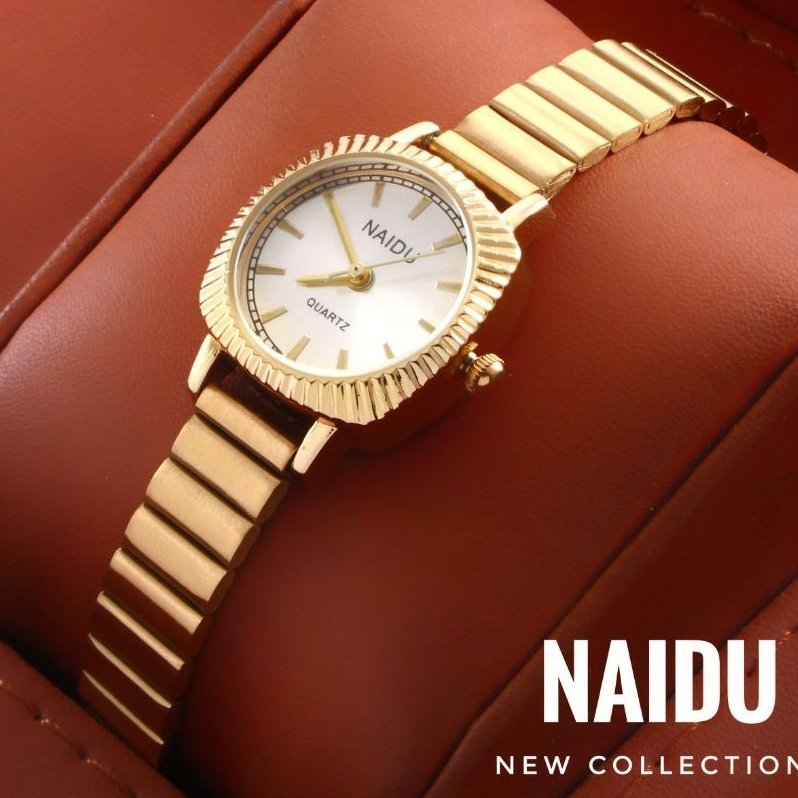 ساعت مچی  زنانه NAIDU بند استیل رنگ طلایی صفحه نمایش گرد+باطری اضافی کد9423